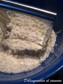 Mélanger la farine, le sucre et le beurre au coupe pâte.